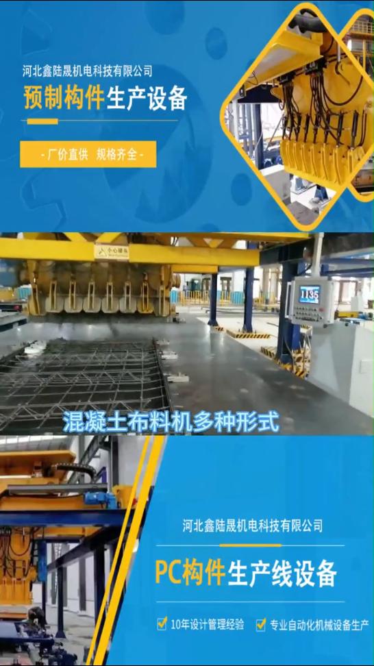 河北鑫陸晟機(jī)電科技有限公司是專業(yè)設(shè)計(jì)制造混凝土預(yù)制產(chǎn)品、PC構(gòu)件生產(chǎn)線、混凝土構(gòu)件布料機(jī)等設(shè)備的廠家。
